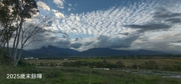 2025年最後一抹夕陽,農夫在三兮農場靜靜看你……餘暉緩緩褪去,最終隱沒在中央山脈層疊之後,逆光迅速刻劃出强勢稜線,雲層如舞台階梯,我拾級而上拱手謝幕。 微冷的風中,望向田裡一株株果苗,默默期盼它們能順利熬過寒冬,在新的一年裡汲取土地的力量,慢大、茁壯結果。