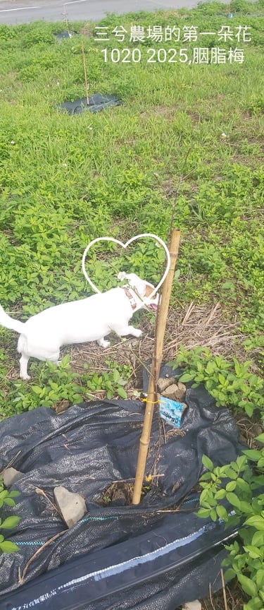 10月1日定植後風調雨順,迫不急待開出農場的第一朵花😄,是胭脂梅,必須銘記