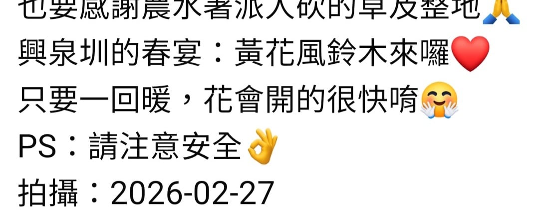 立春,三兮欣欣向榮,苗栽們頭角崢嶸各顯實力.....雖說四時有序,農夫還是相信貼心兒子的福氣,扛50公斤有機粒肥每一株一勺勺餵養,苗栽才有力氣向天吶喊呀😄🧡💪🫰👍 .....但是,也不對,應該是認養果樹的新朋友們的福氣才對....唉呀總之,快過年了,大家夥們抱團福氣😍0212 2026